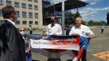 Před krajnym sejmom w Drježdźanach je so wotměła 30.06.2020 manifestacija wobswětowych zwjazkow za zdźerženje wot wudobywanja brunicy wohroženych sakskich wsow Miłoraz, Obertitz a Pödelwitz. Napominanje wobswětowych zwjazkow kaž tež plakatowa akcija ze sydlišćowymi taflami za kóždu z 250 wsow, kiž je so brunicy woprowała, su podpěrowali aktery Serbskego sejma z dwěmaj rěčomaj, němsce a slepjansce. My podpisowarjo smy tohorunja zjawnje napominali k podpěrje demonstracije, kiž je Hagen Domaška dwurěčnje moderěrował.